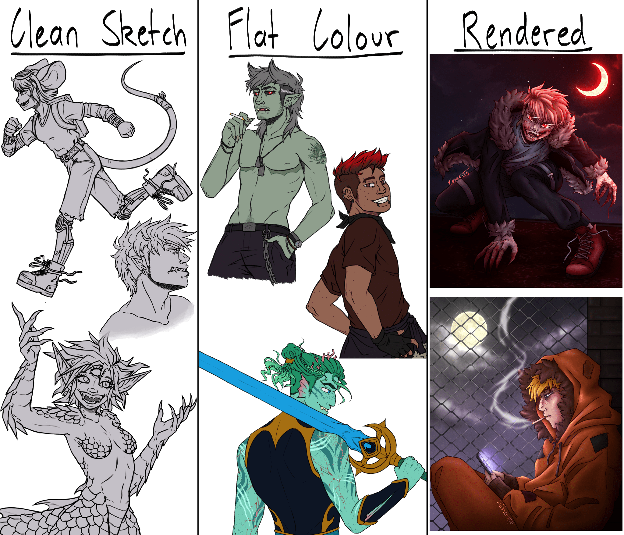 | Clean Sketch | Flat Colour | Rendered |